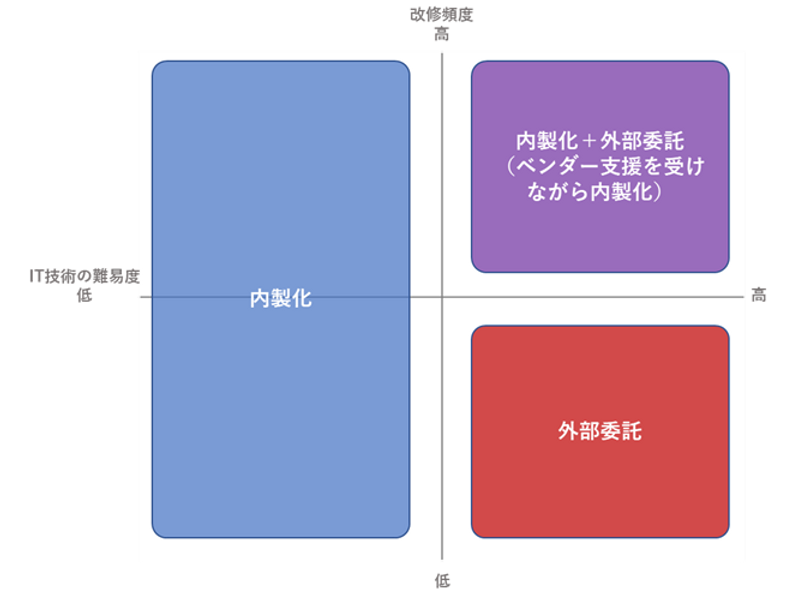 「内製化+外部委託」する領域:上図の右上